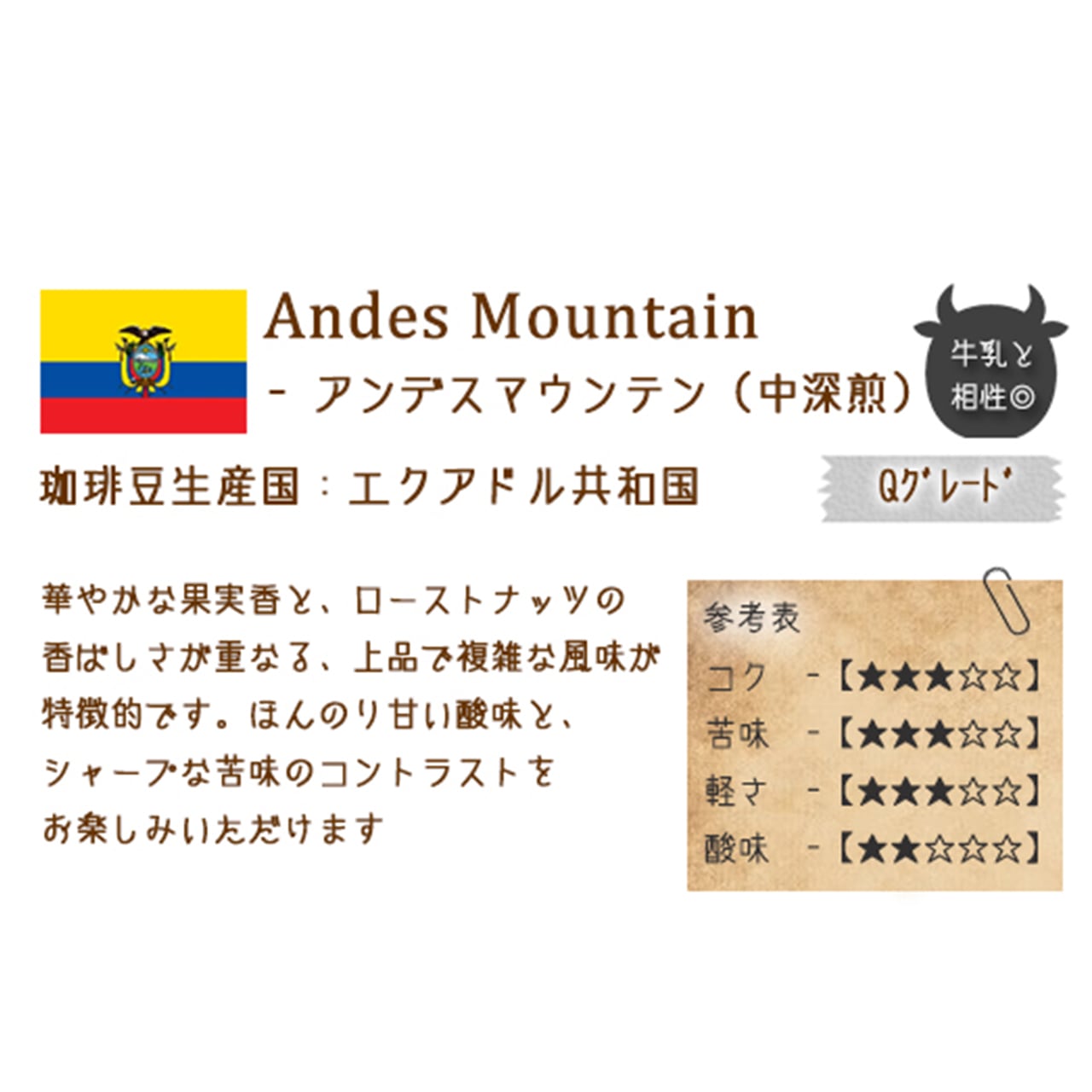 ・エクアドル アンデスマウンテン(中深煎)(Qグレード)