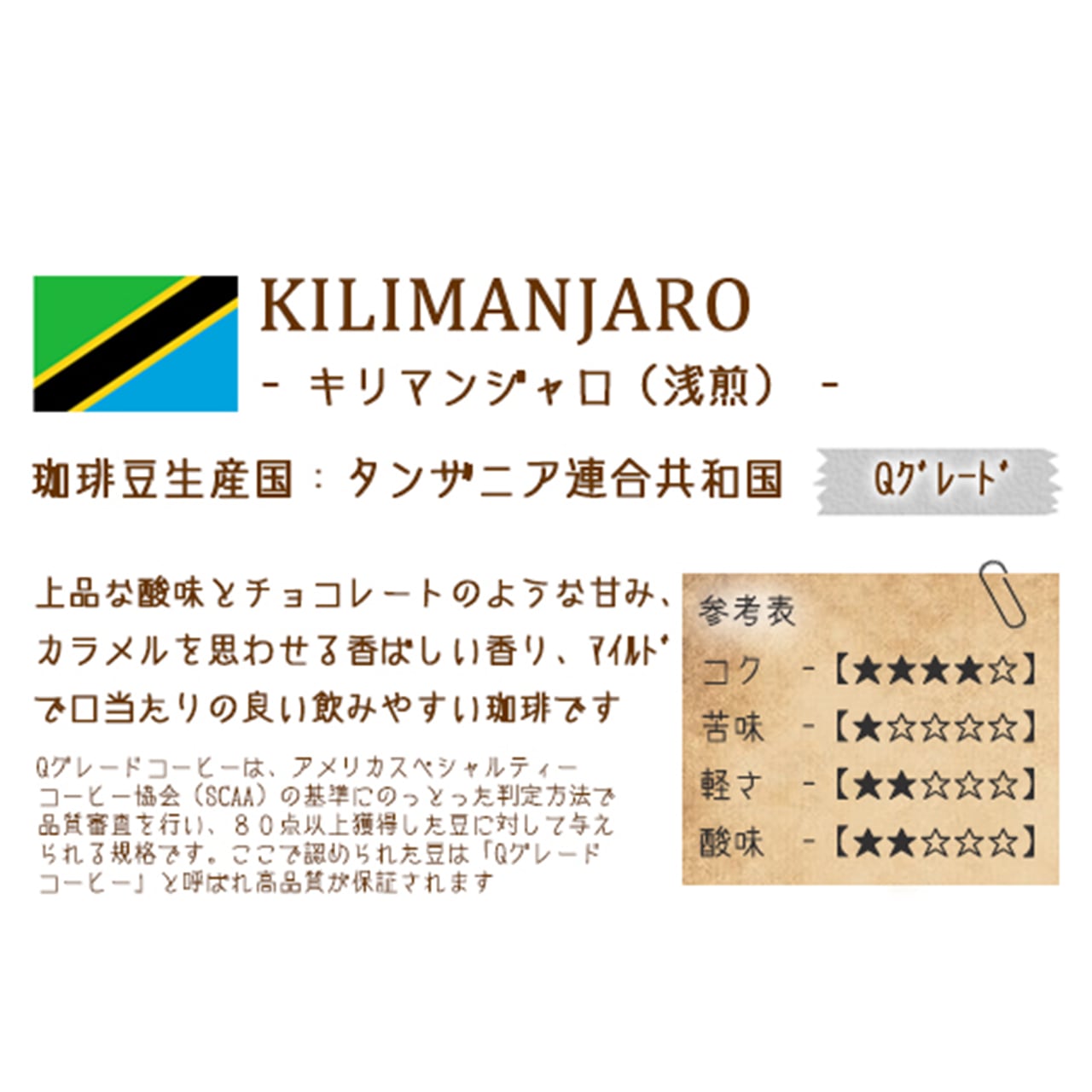 ・キリマンジャロ タンザニア AA クイーンアルーシャ(浅煎)(Qグレード)
